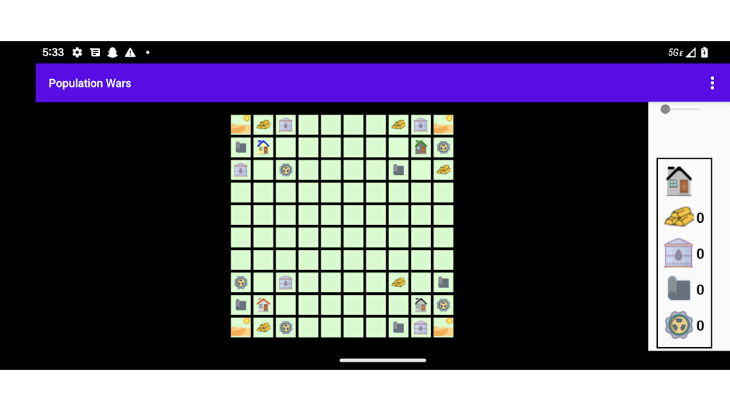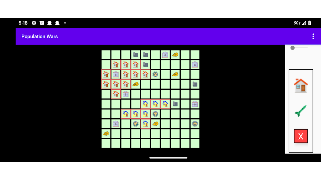 Simulator perang kasual dengan pertumbuhan populasi dan senjata