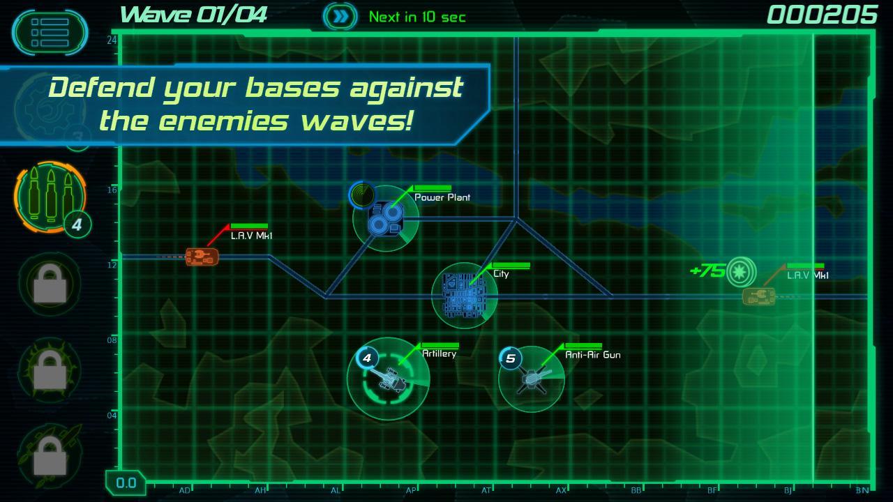 With the help of your radar, identify and localize the enemies. Select the right weapon and destroy the enemy units before they reach your bases