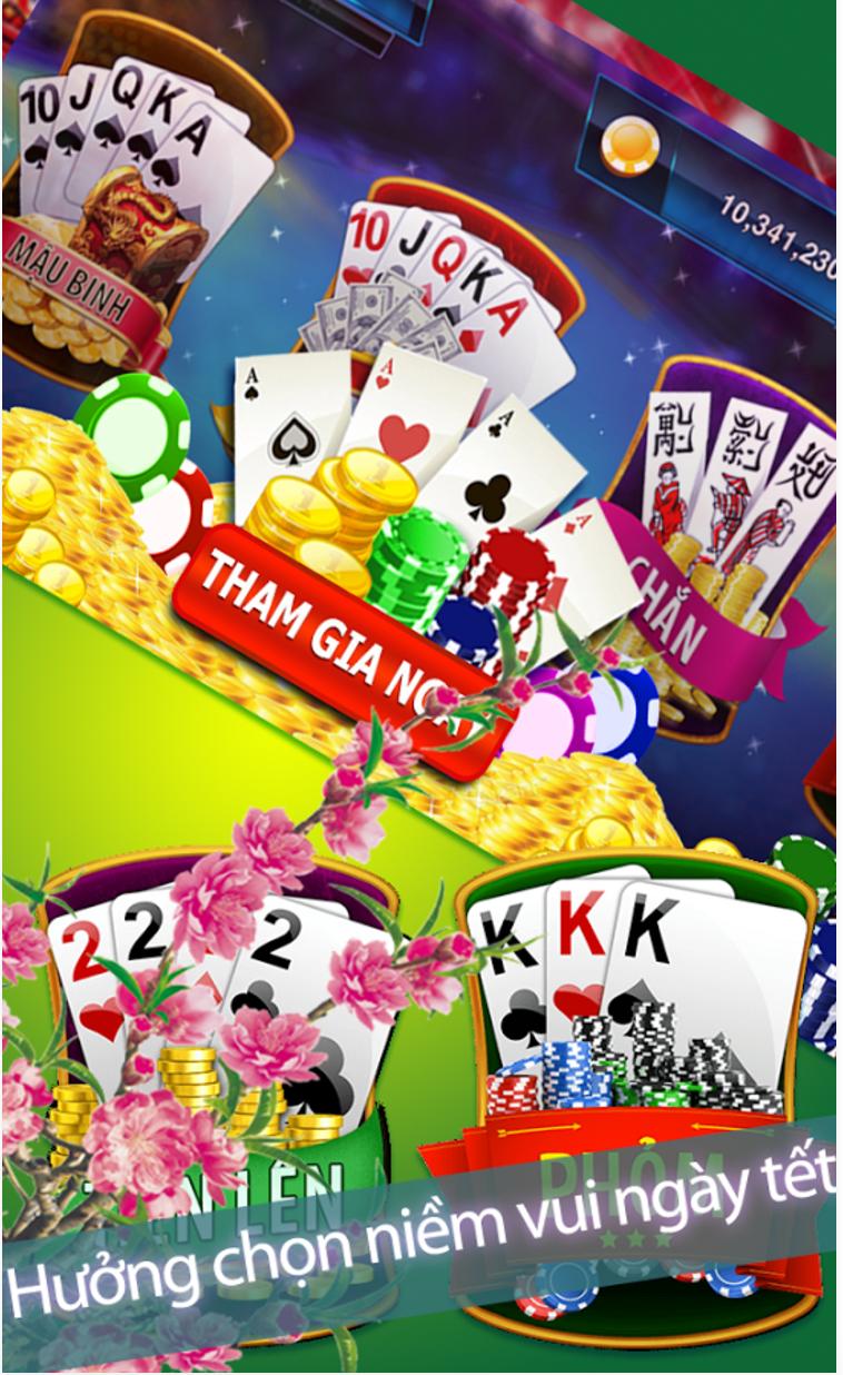 Semoga Anda selamat tahun baru - Dai Cat - Dai Loc! Banyak koin gratis, dan serangkaian hadiah setiap hari. Beberapa permainan kartu khas dapat disebutkan di bawah ini: