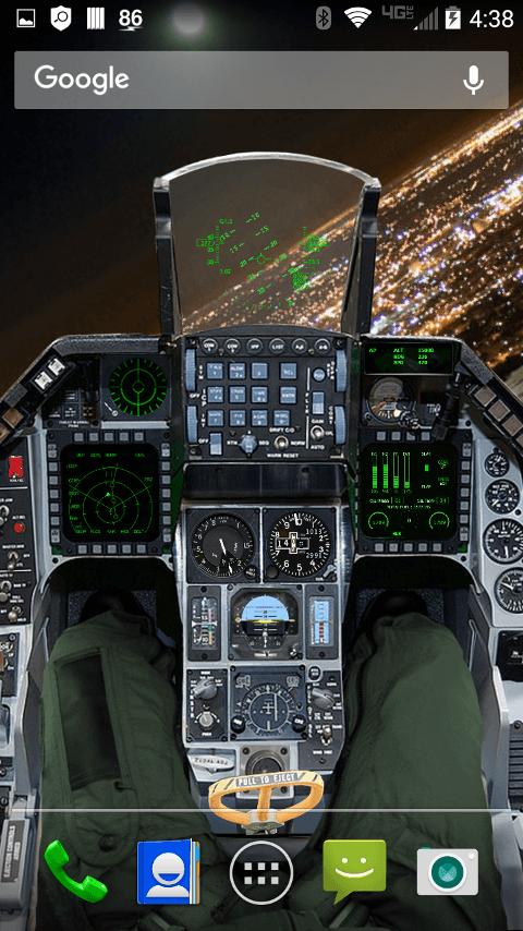 航空をテーマにした時計ウィジェットとコックピットのライブ壁紙