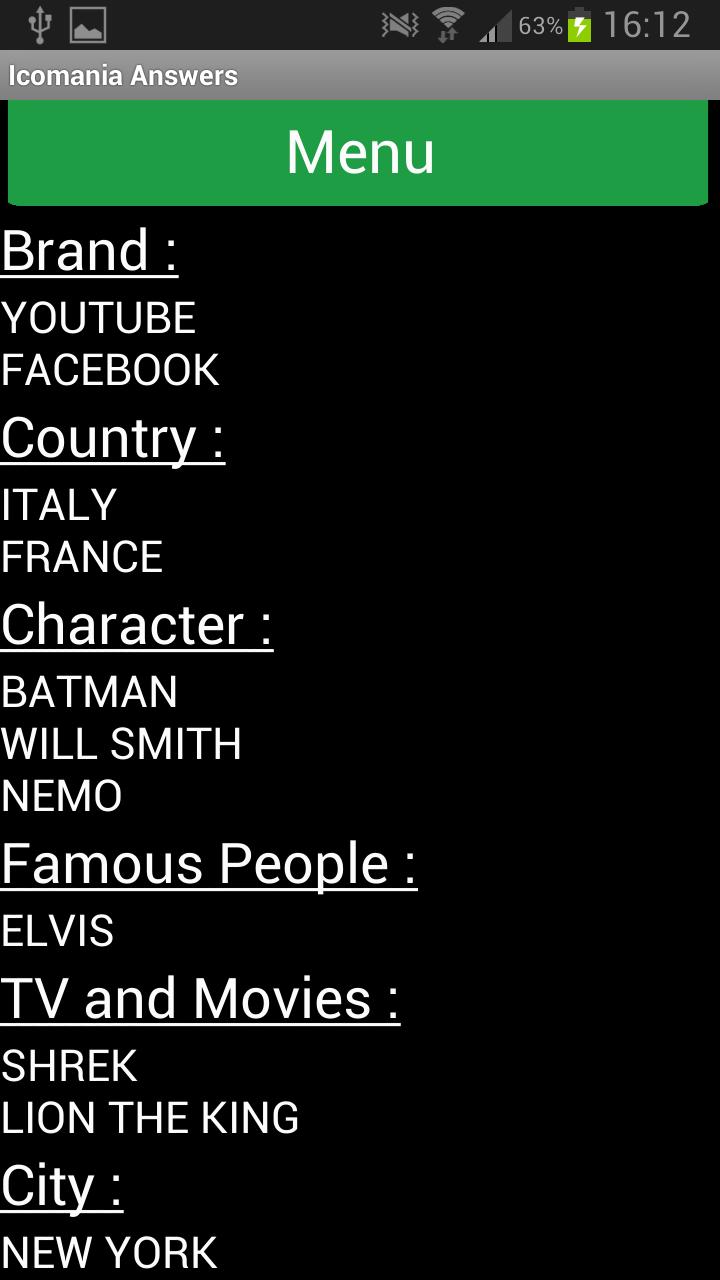 Icomania Answersは、ゲームのすべてのレベルに対するすべての回答が含まれています。