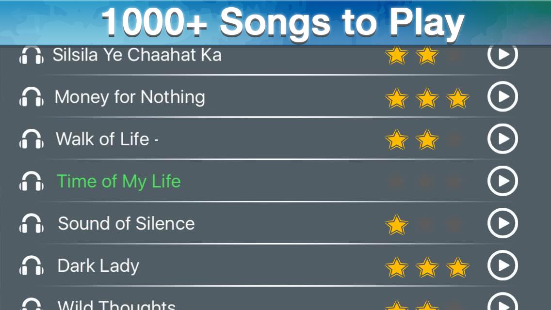 ロック、クラシック、最新のポップ、映画のテーマチューン、テレビテーマチューン、60年代、70年代、80年代、90年代、ノート、モダン、オルタナティブ、インディー、ラテンなどのすべてのジャンルを含む1000曲以上の曲をプレイできます。