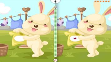 すべてのゲームには異なる動物シーンがあります。魔術師がステージ上にいるサーカスのシーンでは、野生の美しい虎やバニーのシーンに違いがあります。また、パズルを解く途中で蝶、カエル、カラフルな花が見えます。また、隠された違いがあり、イースターバニーが洗濯をしているイースターバニーもあります。