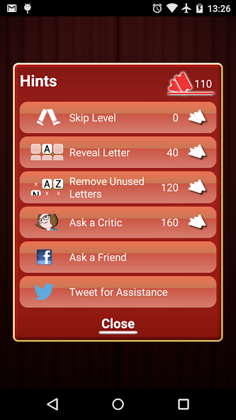 これが「機能」でなければならないのは残念です。あなたがそれを望むときに私たちのゲームをプレイしますが、あなたはそれを望みます。時間制限、通知メニューに気を散らすもの、友人に前進するために盗むことはありません。ゲームが得意で、チャレンジが大好きなら、すべて無料でプレイしてください!すべてを前もってバイインしてロック解除したい場合は、それもできます。スキップレベルは無料なので、好きな順序で各カテゴリを完成させてください!特定の映画で立ち往生しているときのヒントシステムもあります。