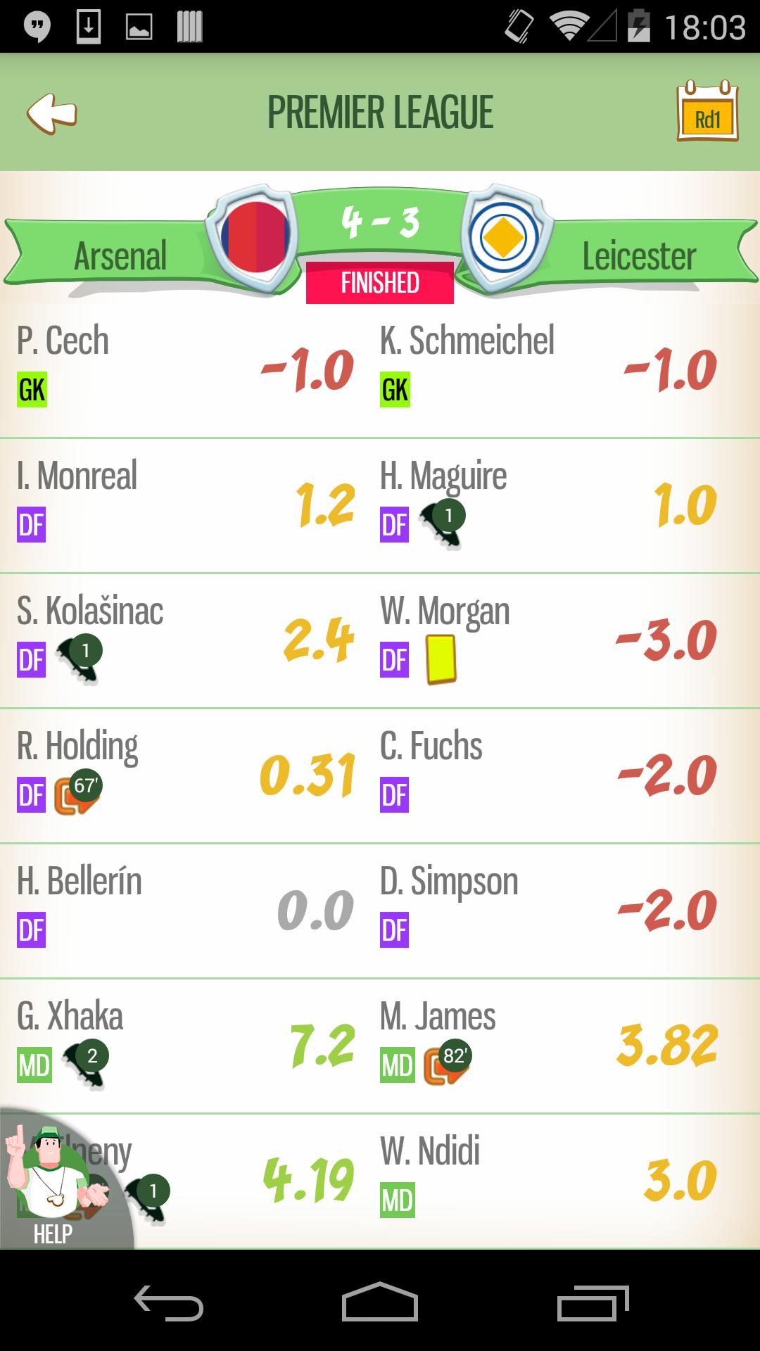 -각 경기를 직접 팔로우하고 플레이어가 얻는 포인트를 확인하십시오.