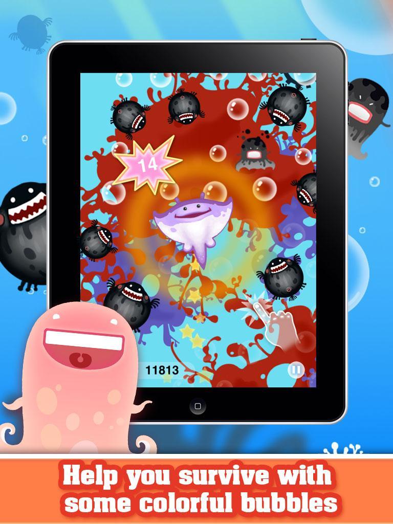 산소 거품을 탭하여 바다 동물의 수영을 위로 안내하십시오. 검은 거품을 피하거나 동물이 질식합니다! 숨어있는 좀비 생물을 조심하십시오. 모험을 돕기 위해 유용한 도구를 선택하십시오. 최고의 점수를 얻으려면 가장 멀리 수영하십시오!