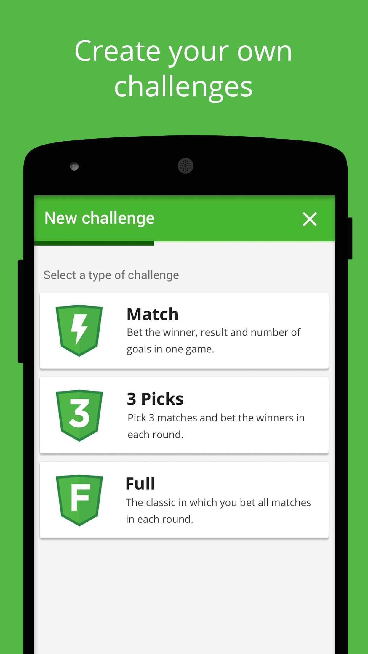 ▸ 몇 초 만에 자신만의 도전을 만들고, 한 경기 중 하나를 전체 시즌까지 선택하십시오.