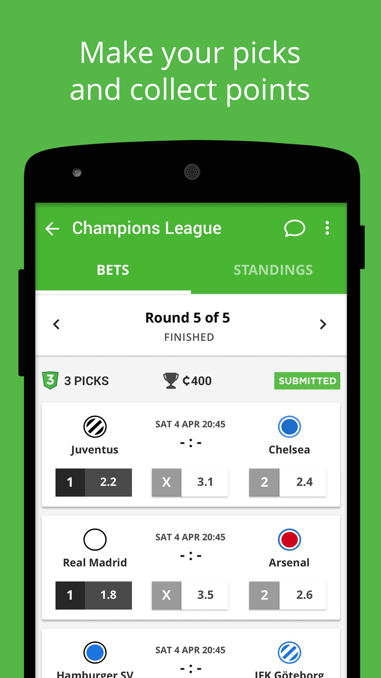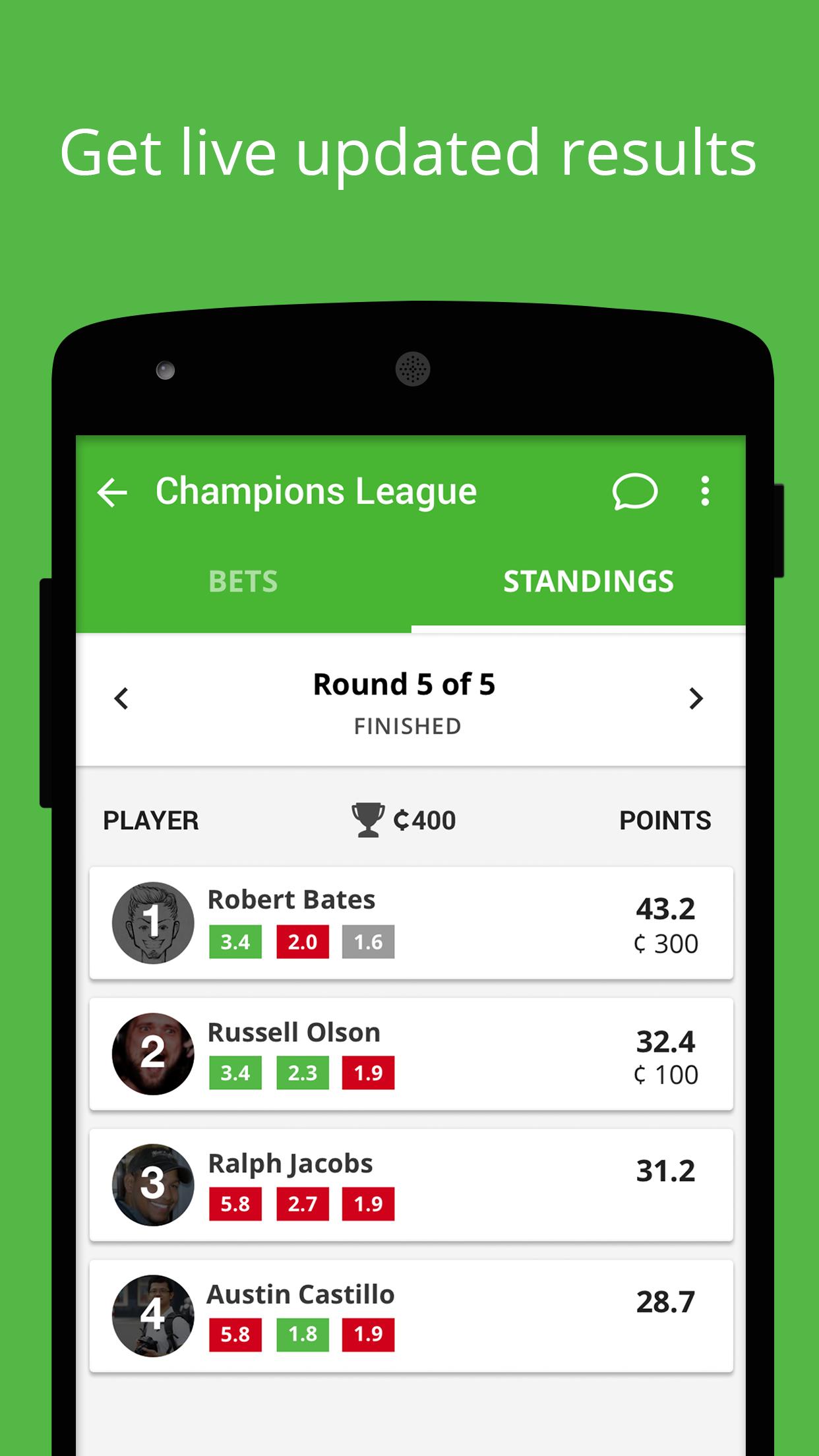 ∎ 고유 한 확률 기반 스코어링 시스템을 통해 베팅을하고 포인트를 수집하십시오.