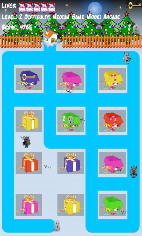 선물을 열고 열쇠를 찾아 집으로 돌아갑니다. 늑대를 조심하십시오.
