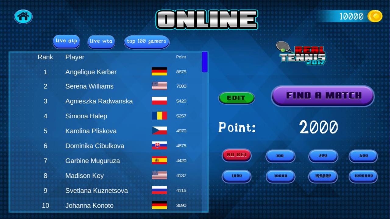 * ATP/WTA + 온라인 멀티 플레이어 라이브