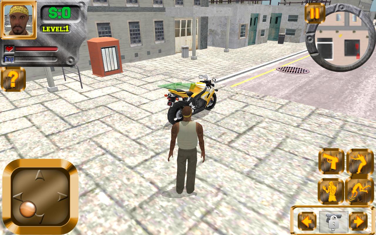 당신은 빈민가에서 태어 났고 위험으로 가득 찬 거리에서 살아 남았습니다! 이제 도시에서 당신의 지배력을위한 시간입니다. 촬영, 수류탄, 차를 훔치고, 자전거, 트럭 또는 탱크로 상대를 부수십시오! 헬리콥터에서 폭도장에 착륙하십시오! 부패한 경찰이 당신의 방식으로 서있게하지 마십시오. 적을 죽이고 갱단을 존중하십시오!