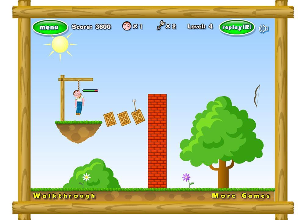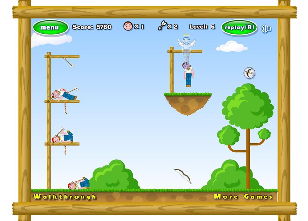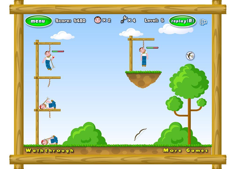 활과 화살을 사용하여 매달린 사람들을 구하십시오.