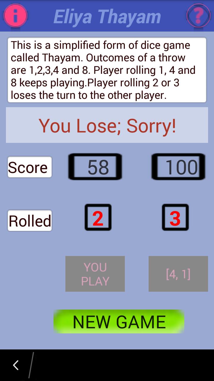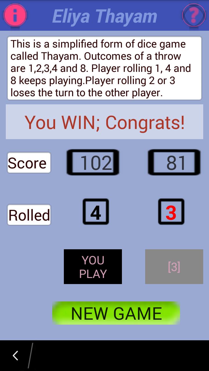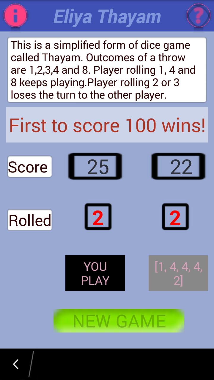 고대 게임 Thayam은 주사위가 튀어 나온 보드 게임으로 플레이해야합니다. 사용자가 게임을 즐기기 위해서는 보드와 주사위없이 만들어집니다.