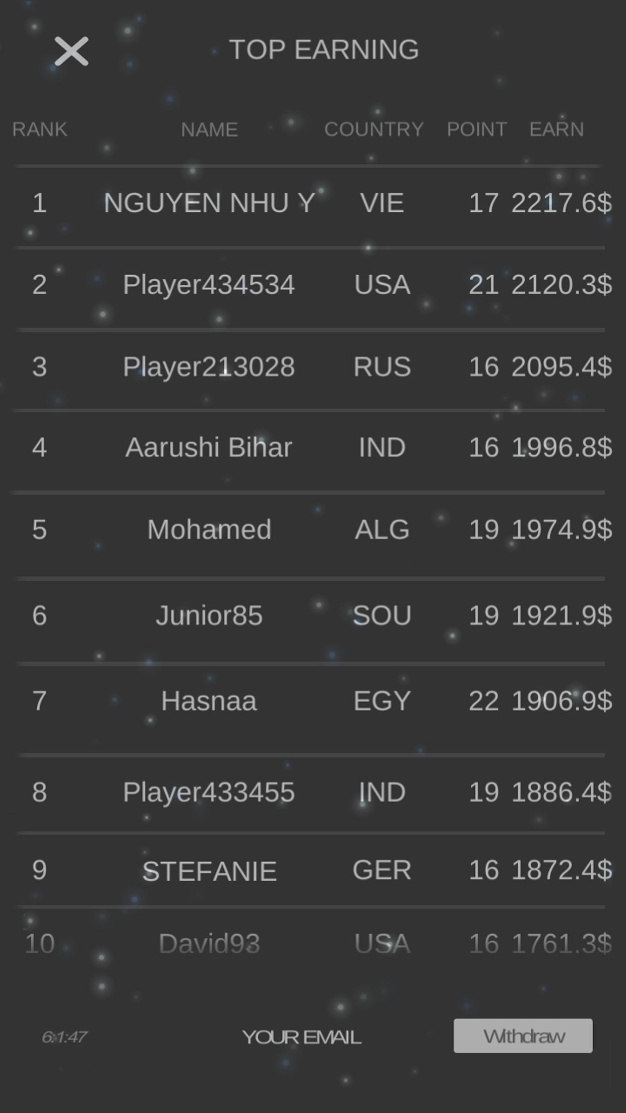 30 $는 인출하는 것이 최소입니다. 앱에서 철수를 누른 후, 당사는 귀하의 정보를 받고 확인하고 연락하여 즉시 돈을 보내게됩니다.