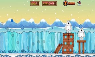 이 북극곰은 아직 당신을 공격하지는 않지만 미안보다 안전하는 것이 낫습니다. 올바른 방향으로 발사체를 발사하여 펭귄 군대와 함께 제거하십시오.
