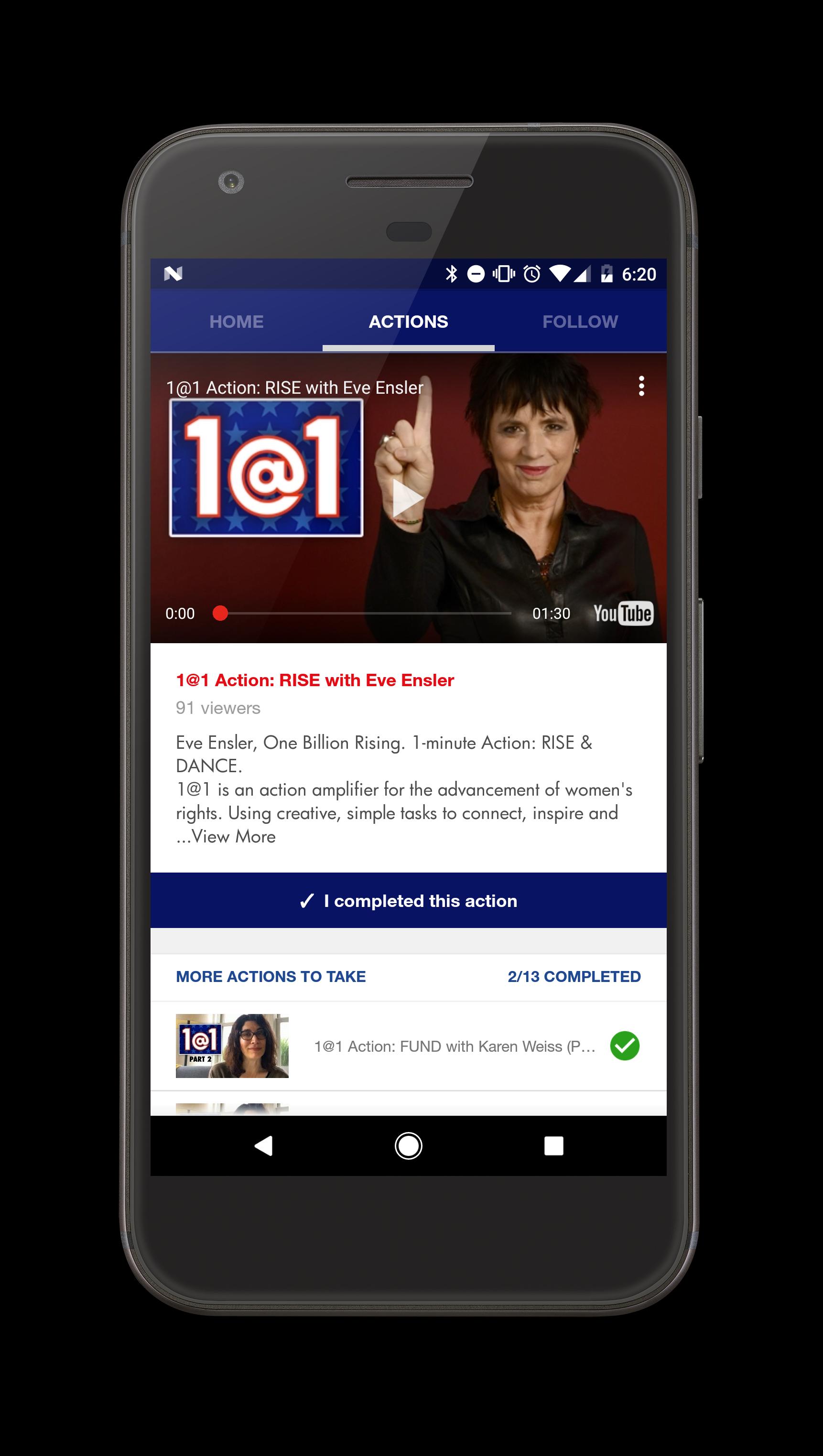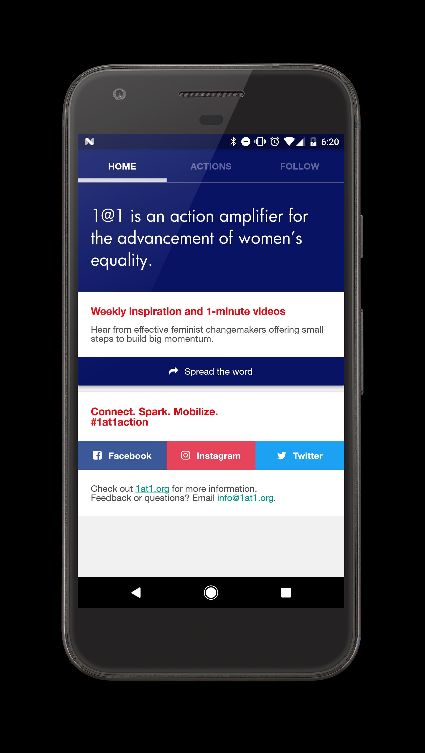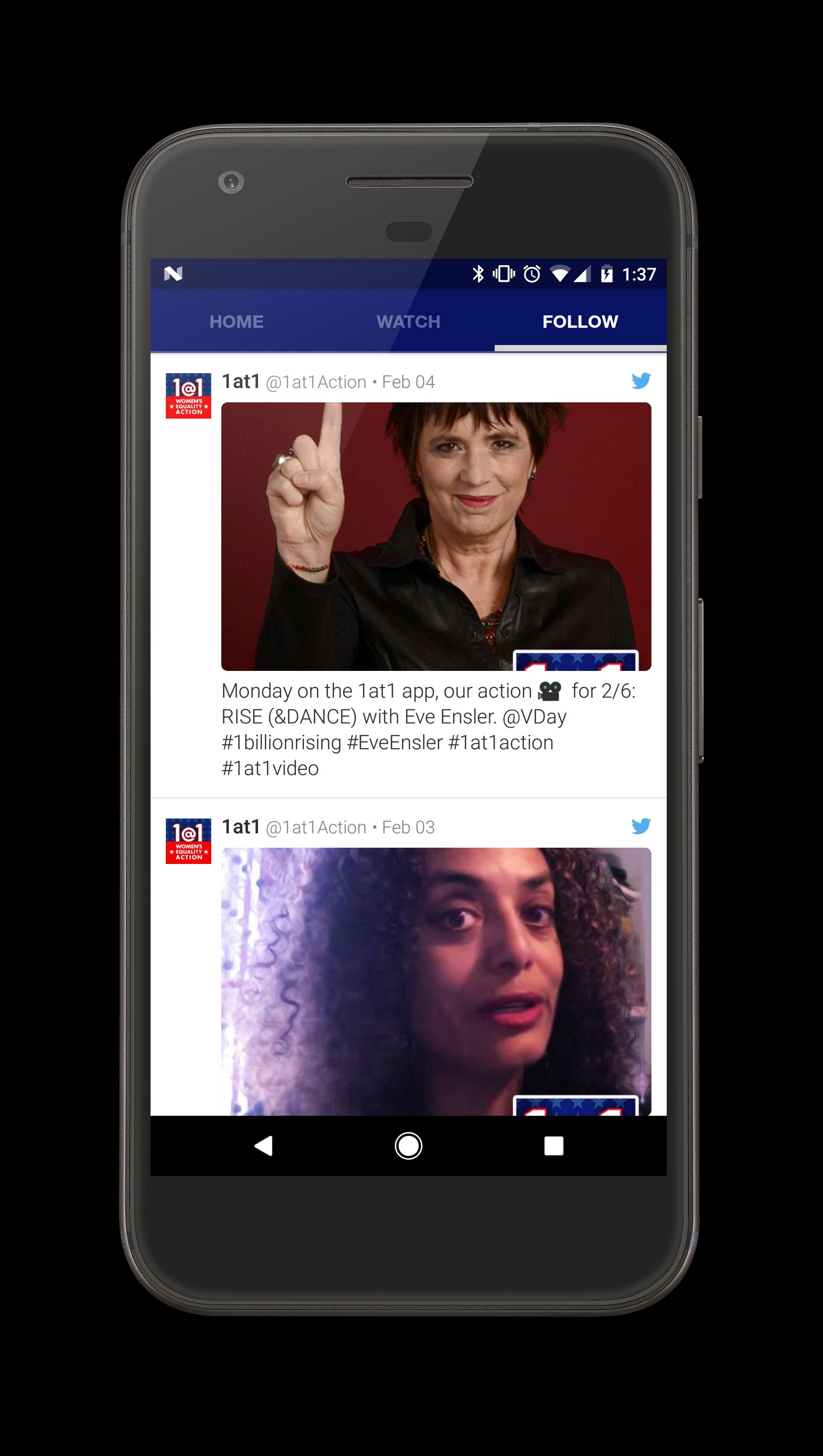1@1 é um amplificador de ação para o avanço dos direitos das mulheres. Às segundas-feiras às 13h ET, entregamos vídeos de 1 minuto de mudanças feministas, oferecendo pequenos passos para criar um grande impulso que precisamos continuar avançando e evitar o esgotamento, a complacência ou o desespero.