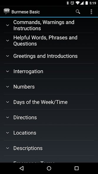 Usando este aplicativo, você pode selecionar uma frase em inglês e visualizar sua tradução e como pronunciá -la em birmaneses.