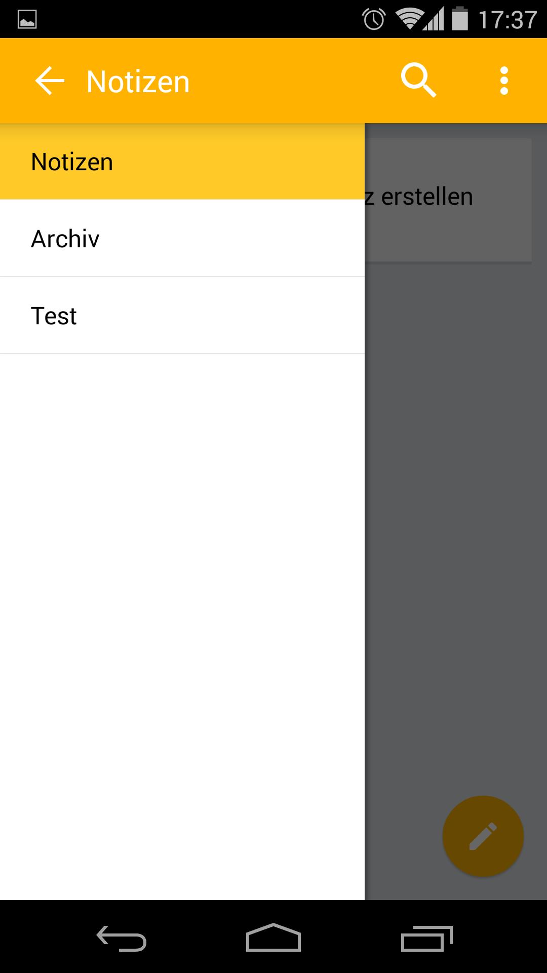 A própria Denkzettel não possui sincronização interna, apenas aqui define o caminho para os arquivos *.txt, por exemplo, no cartão SD. Qualquer aplicativo pode, portanto, ser usado para sincronização, por exemplo, passaSync (também suporta WebDav).