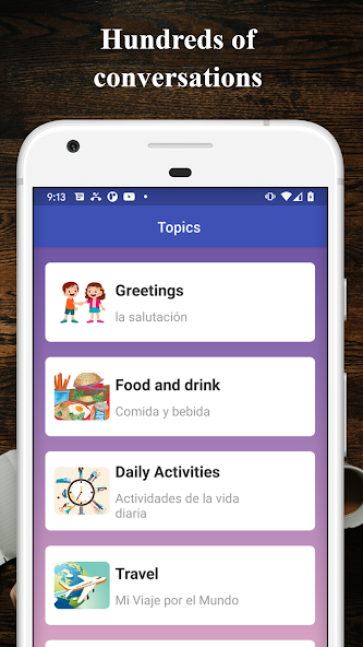 O aplicativo de conversação de vocabulário French inclui mais de 100 conversas French que cobrem as conversas French mais usadas de 9 categorias: