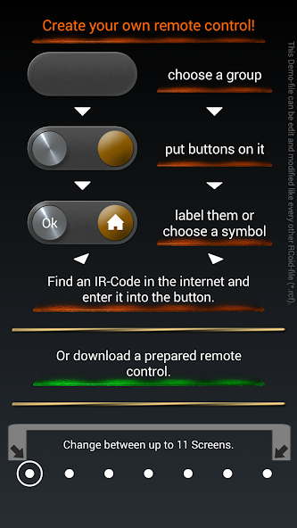 Alternativ, você pode criar seu próprio controle remoto IR. Você pode decidir a forma, o tamanho, a rotação e a cor dos botões. Os códigos de IR necessários você pode encontrar na Internet.