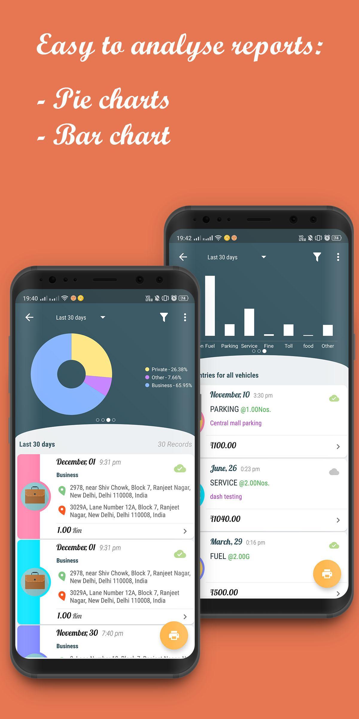 Acompanhe e gerencie quilometragem, renda e todos os tipos de despesas, como combustível, serviço, pedágio etc. para o seu carro, caminhão ou qualquer outro automóvel.