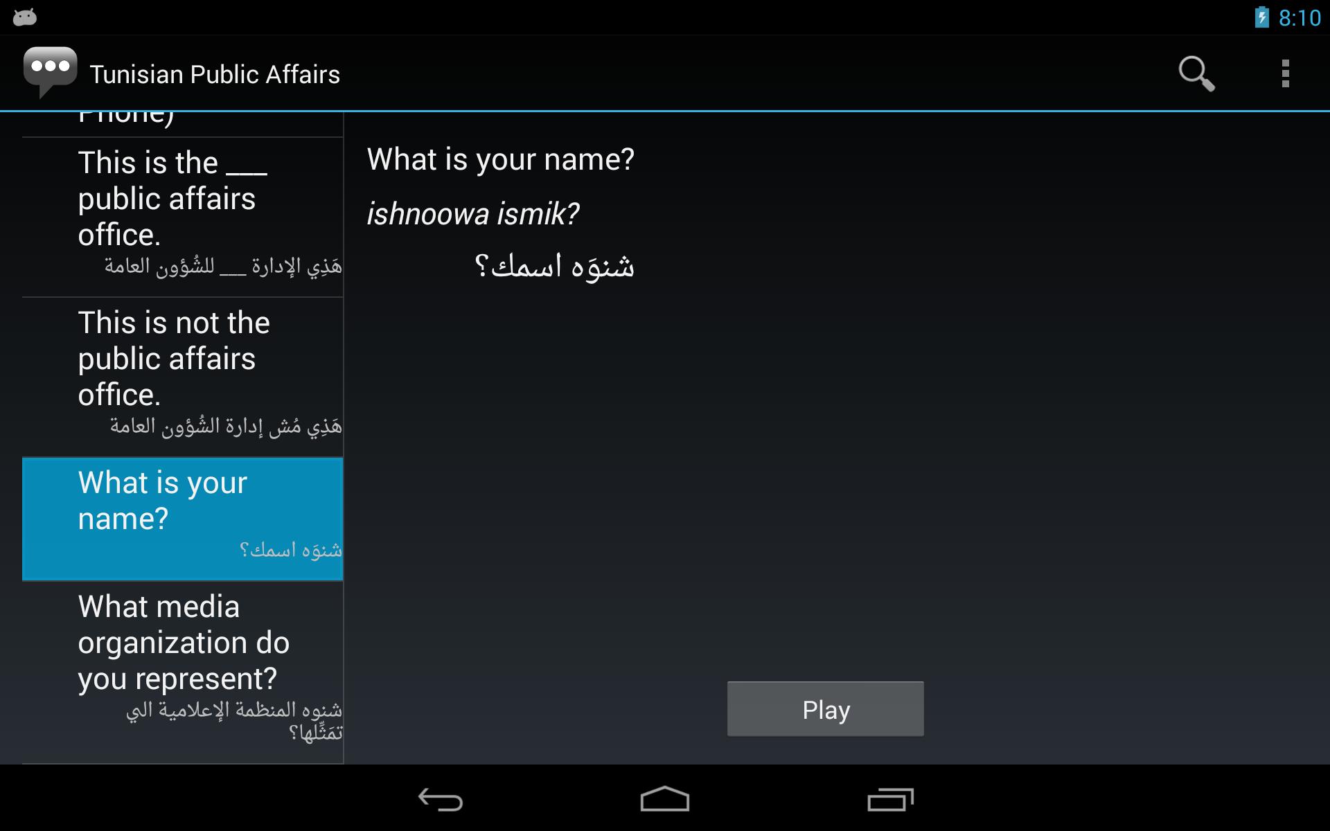 Este aplicativo foi originalmente desenvolvido como uma entrada nos aplicativos CIO/G6 de 2010 para o Exército ", e é baseado nos módulos disponíveis publicamente on -line no Instituto de Idiomas de Defesa dos EUA.
