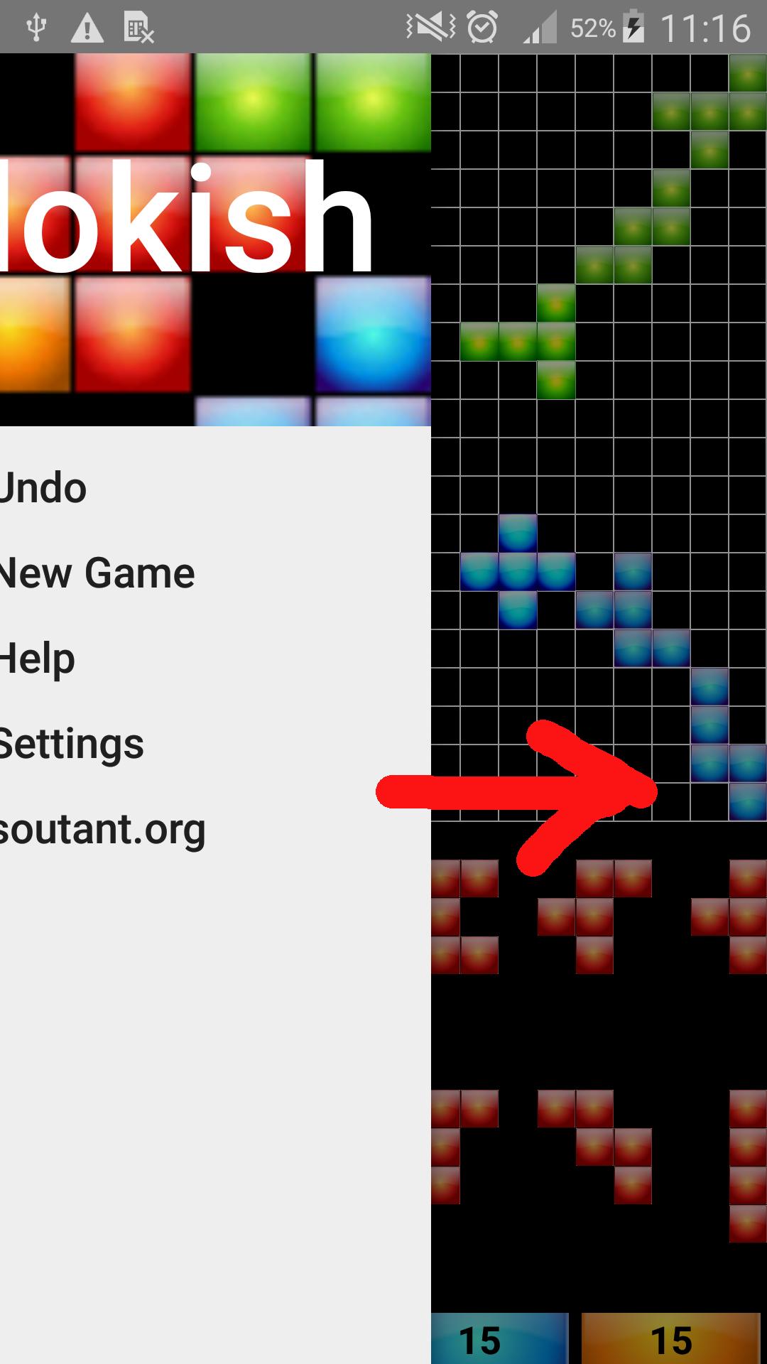 O jogo tem uma interface de usuário agradável e natural: basta arrastar e soltar a peça com o dedo. Gire uma peça da mesma forma.