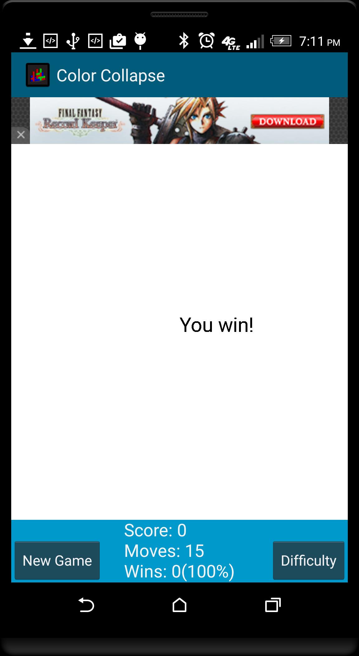 Este jogo simples envolve clicar quadrados, enquanto todos os quadrados adjacentes também são removidos. Você deve clicar em grupos de dois ou mais. Agora, com pontuação, movimentos e contagem.