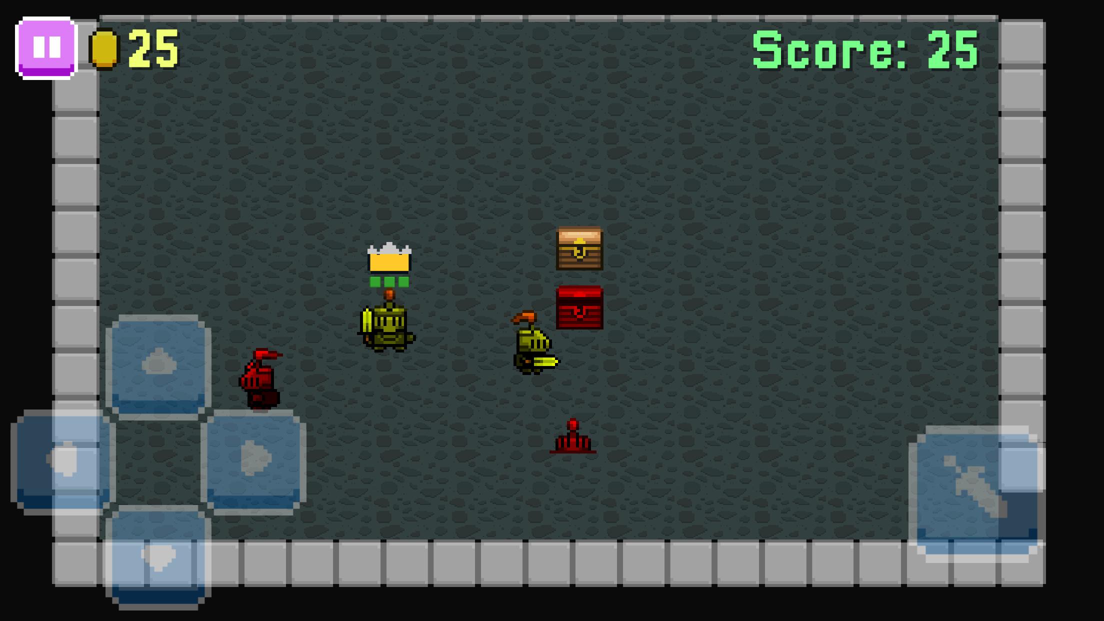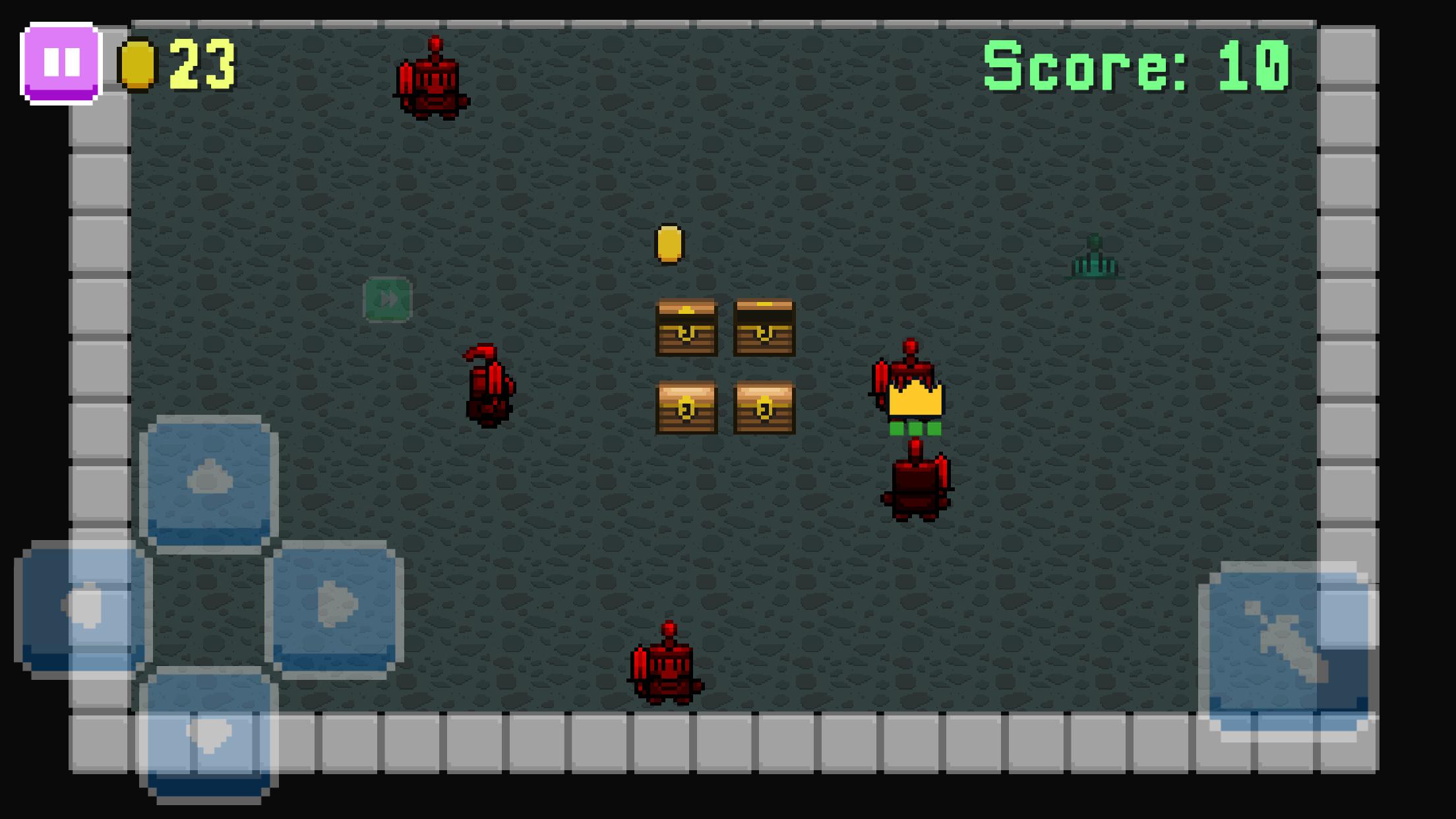 Os inimigos mortos soltarão moedas douradas que você pode usar para comprar uma nova coroa real. Sua coroa é adequada para um rei, mas por que não conseguir um apto para um deus? Os gráficos retro pixels dão vida à masmorra neste jogo de pixel hack e slash. Prove sua divindade no Divine Reign !