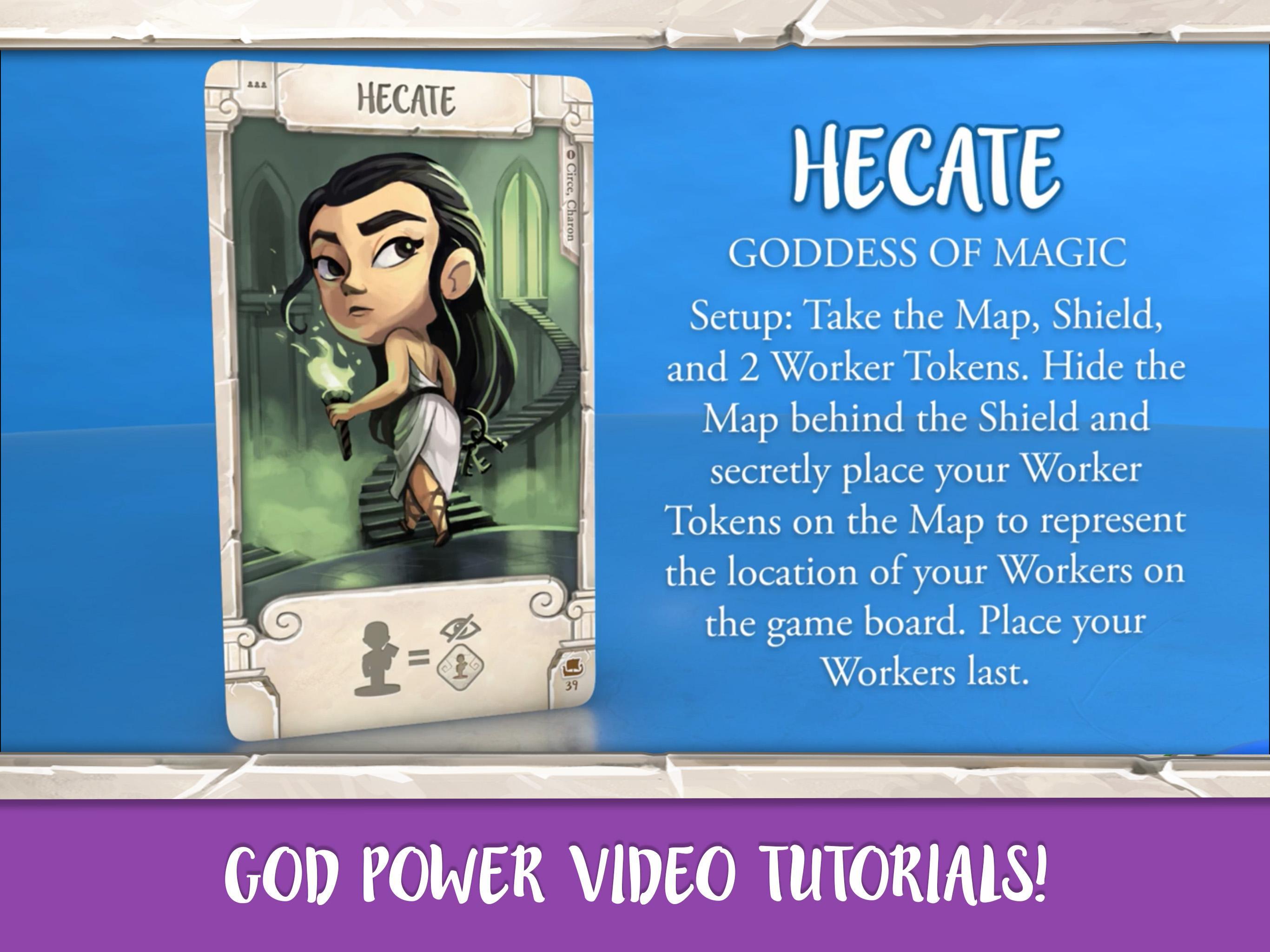 • Tutoriais em vídeo para ajudá-lo a aprender a jogar Santorini e todos os poderes divinos incluídos!
