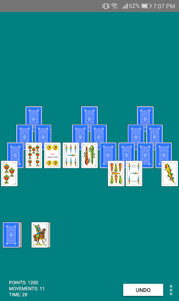 Spanish Tri Peaks Solitaire . Dois sistemas de pontuação. 40 ou 48 cartões