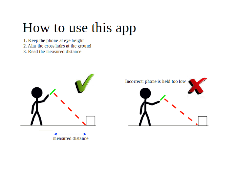 Расстояние рассчитывается по тригонометрии, поэтому для точных измерений вам нужно всегда держать телефон на уровне глаз независимо от угла телефона, указывающего на землю.