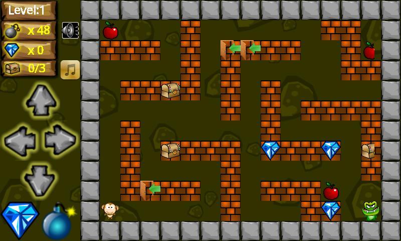Ваша задача состоит в том, чтобы съесть все яблоки на каждом уровне, неопределенное количество дополнительной бомбардировки, спрятанного в кирпичной стене, непобедимого щита, чтобы предотвратить атаку взрывов и демонов, и спрятанные в одном из кирпича.