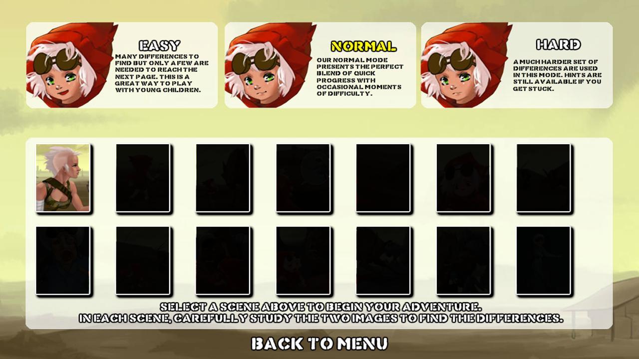 Можете ли вы заметить скрытые различия? Присоединяйтесь к Little Red Riding Ride в этой пост -апокалиптической версии Classic Tale. Найдите различия, чтобы двигаться дальше в истории и в конечном итоге доставить еду бабушке!