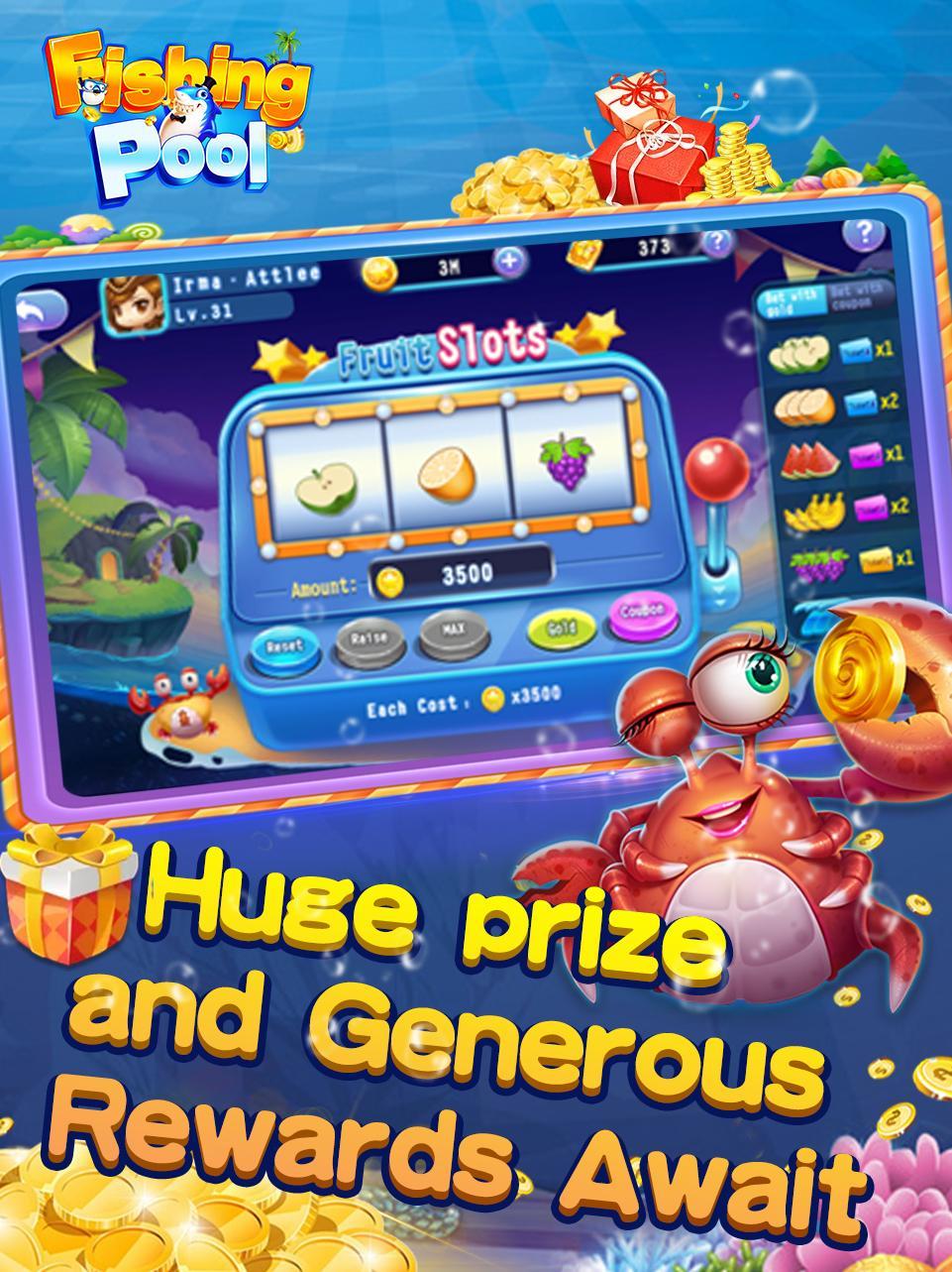 Fishing Pool — это игра для рыбалки, в которой игроки могут обменивать материальные призы и ловить всевозможные виды рыб, имитируя консольную игру.