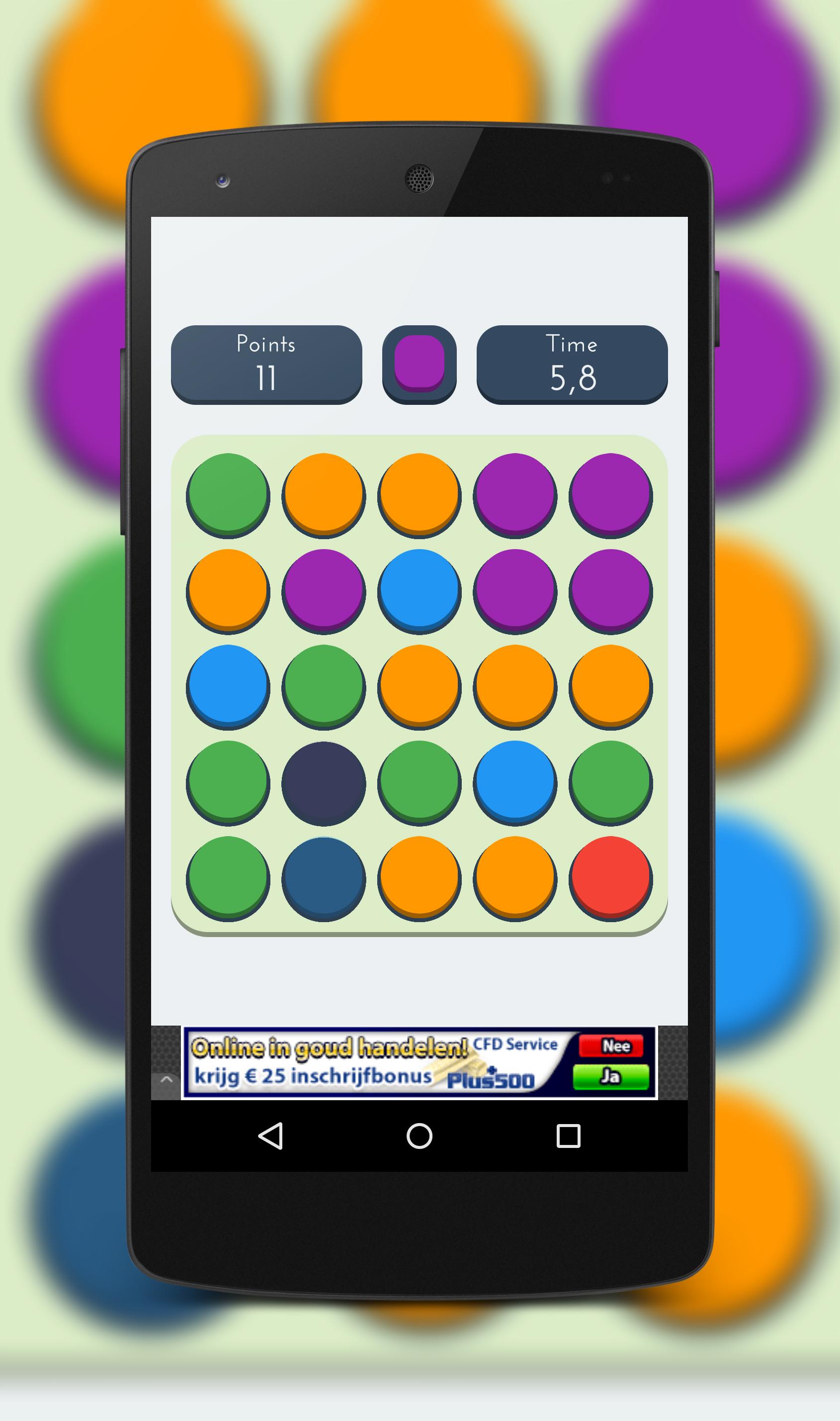 Попробуйте нажать на правильные цвета как можно быстрее, прежде чем время истекает! Постарайтесь быть лучше, чем ваши друзья и присоединиться к нашим глобальным (и местным) таблицам лидеров !!