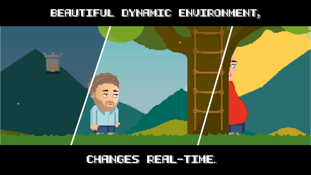 Hero In Adventures -это 2D-пиксельная боковая прокрутка сумасшедшего комедийного триллера.