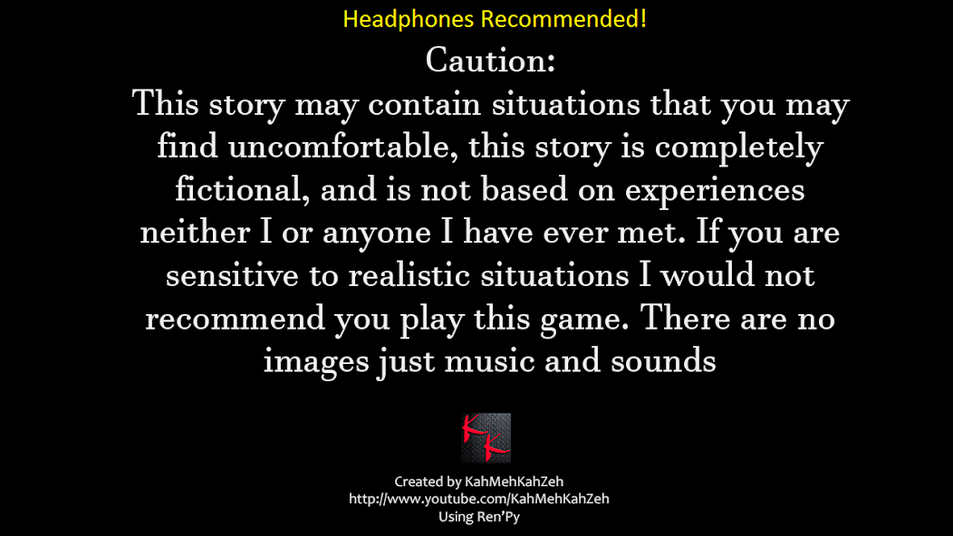 Эта игра может содержать темы и языковой материи, которые могут быть оскорбительными, это будет ваше единственное предупреждение. Если вы чувствительны к серьезным и реалистичным ситуациям. Не играйте в эту игру.