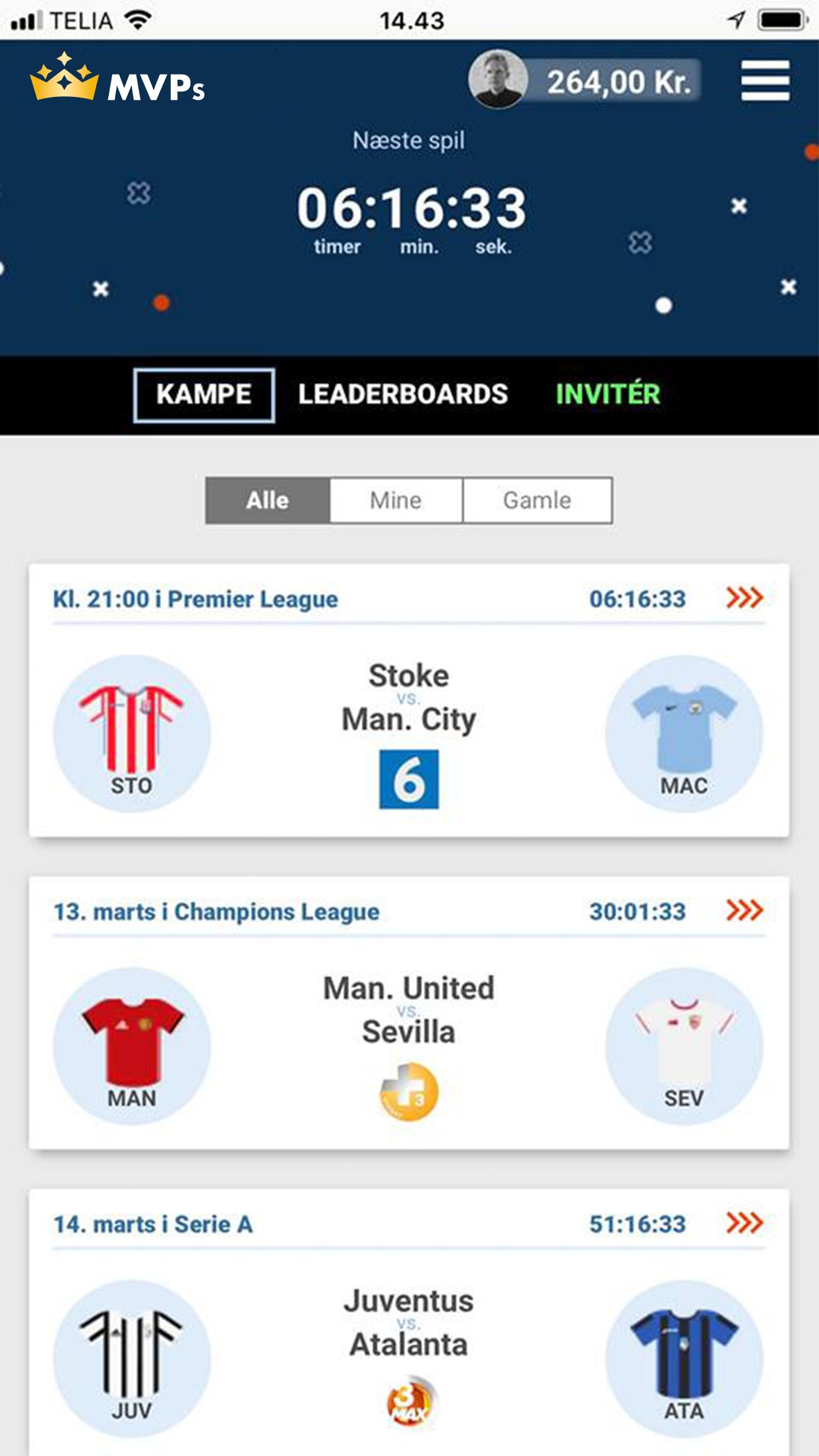 Играйте бесплатно в MVPs , когда смотрите футбол по датским телевидению и датским стадионам.