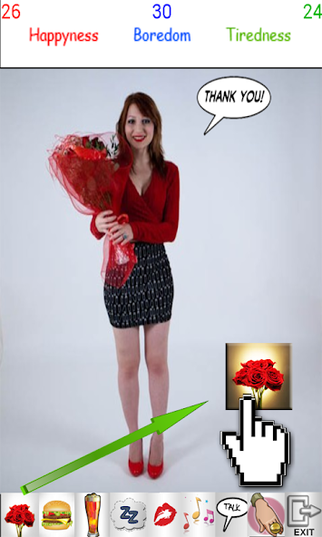 Если вы хотите, чтобы она стала уверенной в себе, вы должны заставить ее чувствовать себя очень счастливой, повышая уровень счастья, в то же время, если ей станет слишком скучно, она не будет готова говорить или играть с вами или делать что -либо.