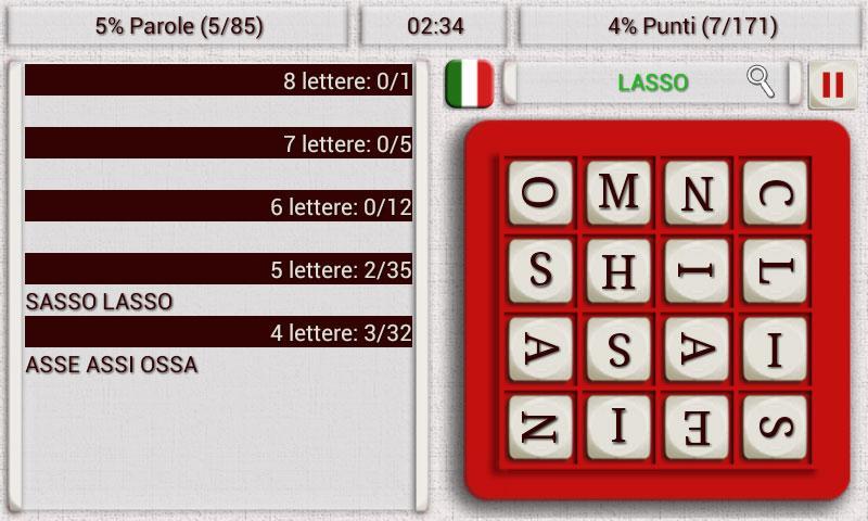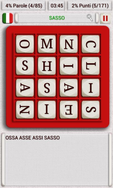 Отслеживайте слова, которые вы знаете, пальцем на игровой доске (в бесплатной версии доступны только 4x4 размер) и изучите слова, которые вы не знаете с помощью встроенной функции поиска в Интернете: Paroliamo основан на достаточности списках слов, чтобы удовлетворить даже более требовательных решателей головоломки.