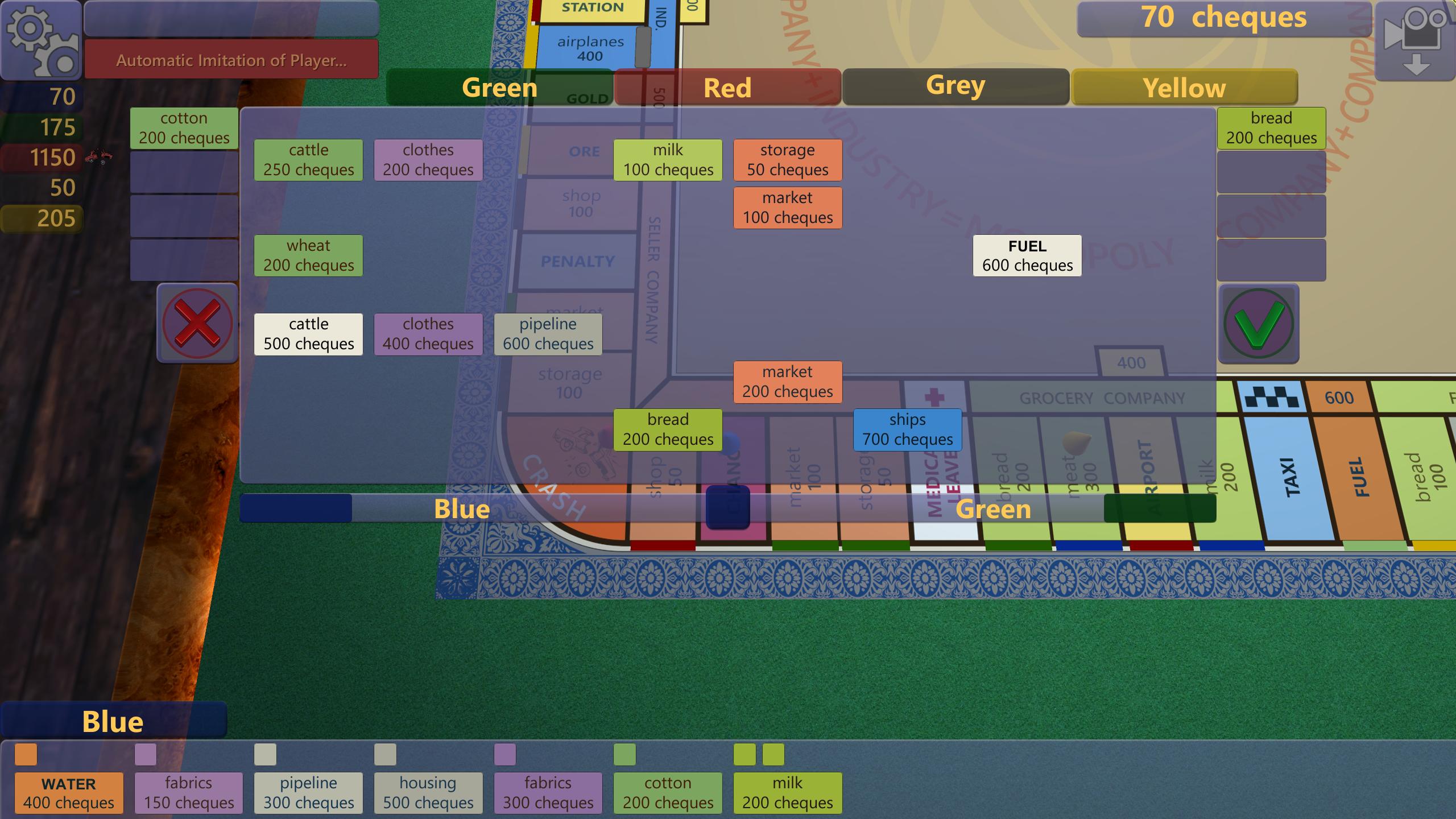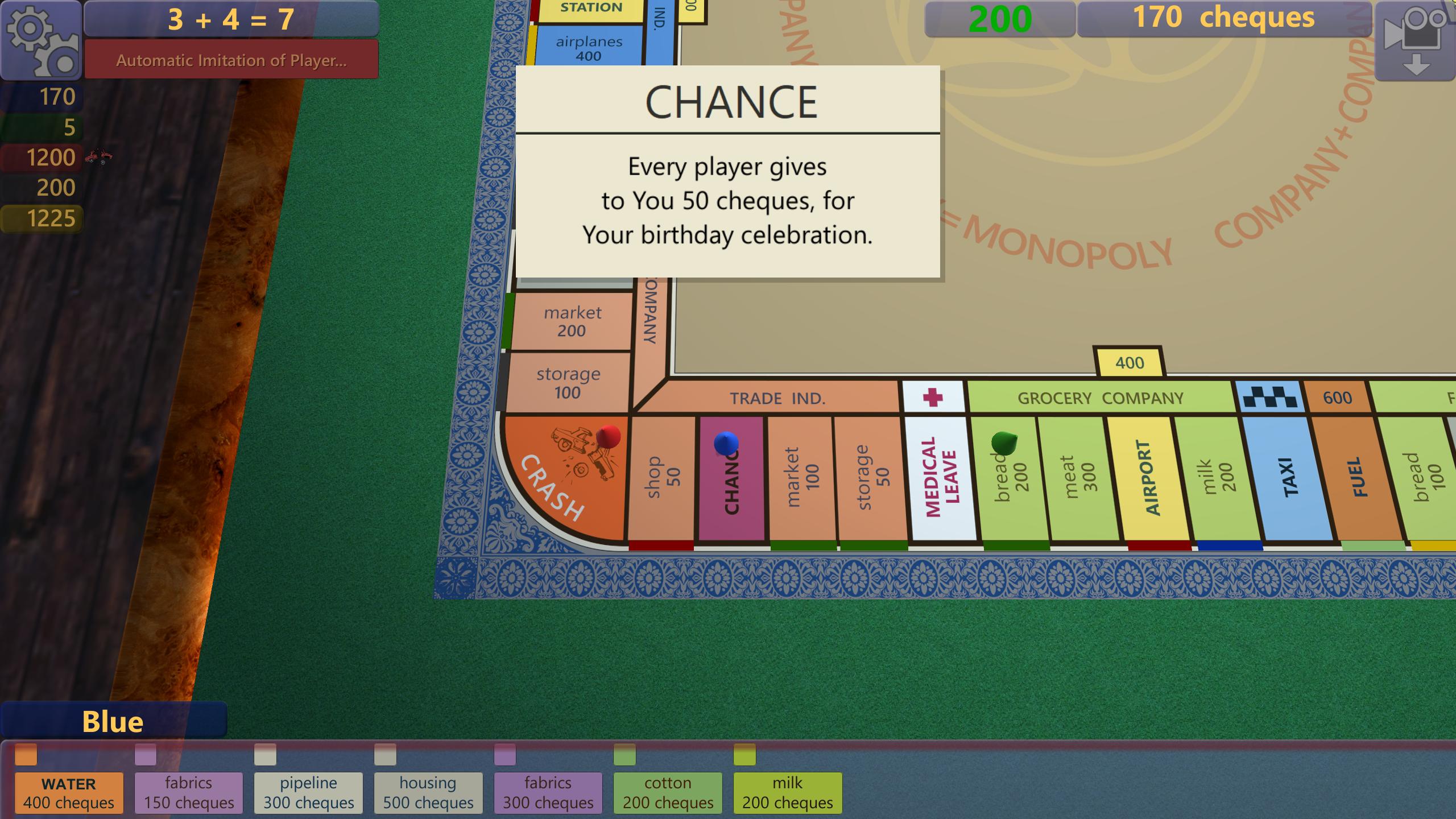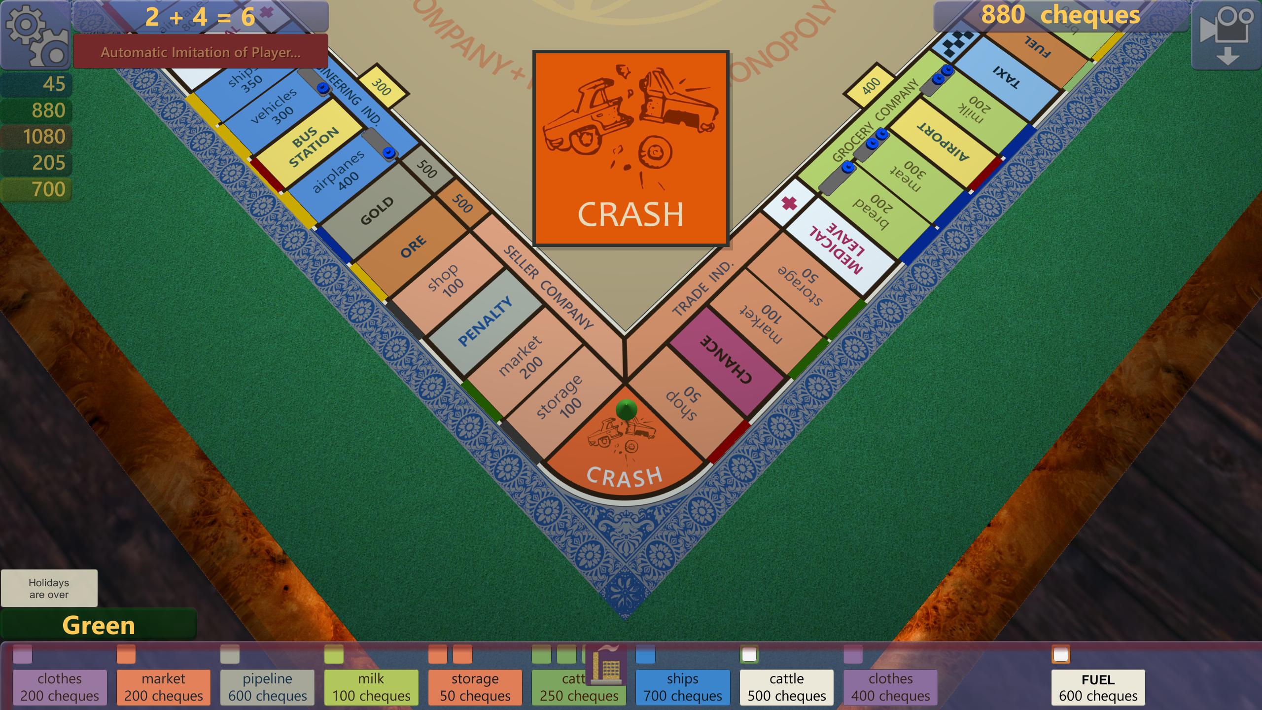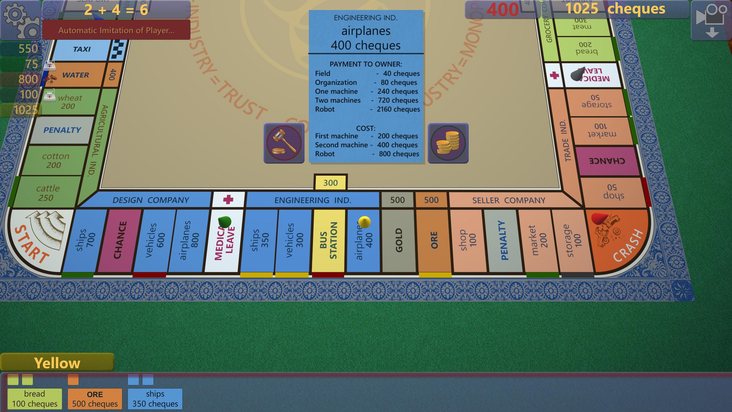 Эта игра представляет собой симуляцию классической экономической настольной игры, в которой чипы игроков перемещаются по полю после броска костей. Игра может участвовать от двух до пяти игроков. Ваши противники могут быть как живыми игроками, так и с компьютерными противниками.