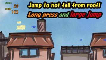 Прыгайте на прикосновение на экране, он не должен упасть кота с крыши.