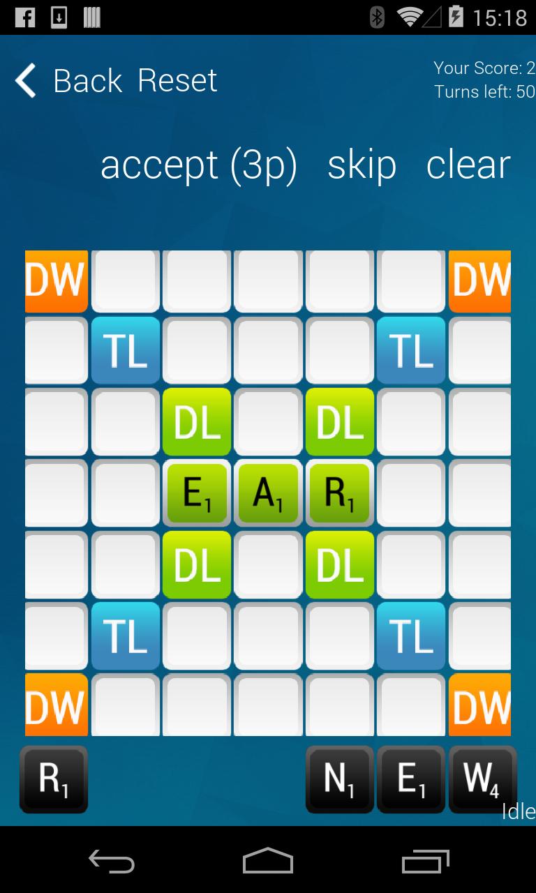 2. На доске Scrabble используйте выбранную буквенную банк, чтобы набрать как можно больше очков, чтобы победить своего противника