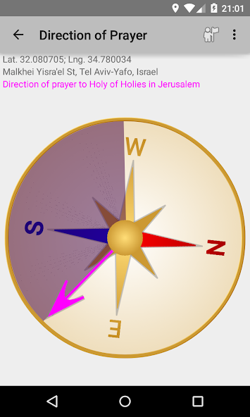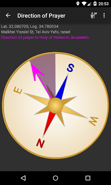 เข็มทิศที่บ่งบอกทิศทางสำหรับการสวดอ้อนวอนของคุณต่อศักดิ์สิทธิ์แห่งโฮลีในเยรูซาเล็มประเทศอิสราเอล