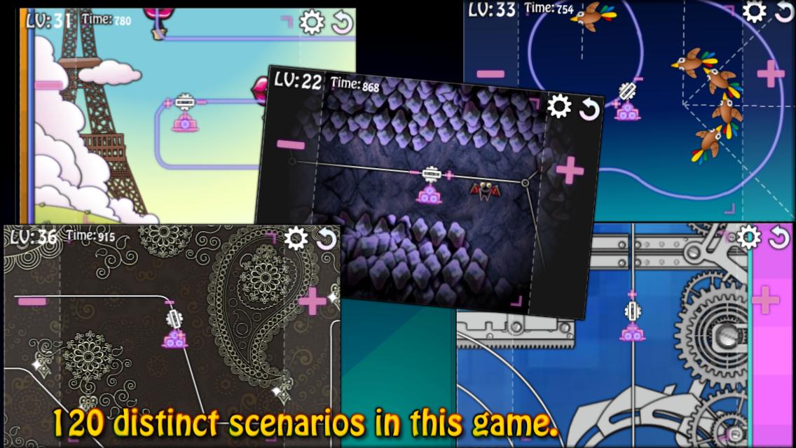 คุณจะได้สัมผัสกับสถานการณ์ที่แตกต่างกัน 120 รายการในเกมนี้ด้วยการแสดงผลที่ยอดเยี่ยม พยายามอย่าแตะต้องอุปสรรคและเมื่อคุณสังเกตเห็นรูปแบบการเคลื่อนไหวของพวกเขาคุณอาจผ่านได้อย่างง่ายดาย
