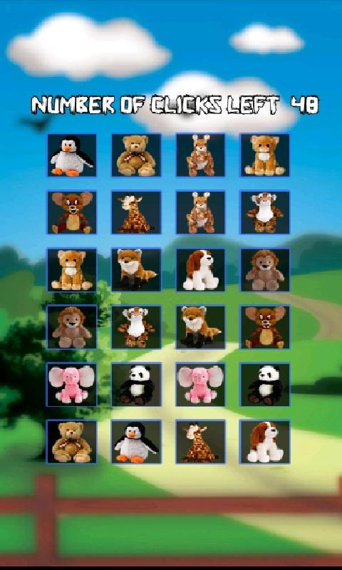 การ์ดแต่ละใบมีรูปตุ๊กตา การ์ดเหล่านี้จะเปิดอีกสักครู่เพื่อให้คุณสามารถจดจำตำแหน่งของ Teddies ได้ งานของคุณคือการจับคู่กับคู่เพื่อล้างบอร์ดและก้าวไปสู่ระดับต่อไป
