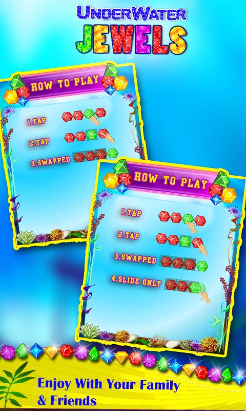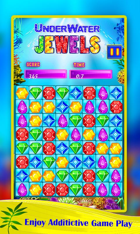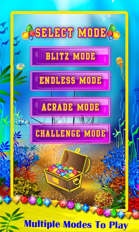 เกม Puzzle Match3 แบบคลาสสิกเพื่อสัมผัสการจับคู่และการล่า Underwater Jewels สมบัติสมบัติ
