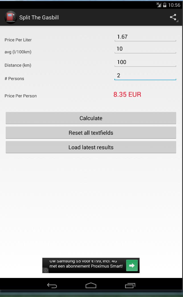 该应用程序将允许您计算汽车旅行的成本。这样,您可以轻松地与乘客分配成本。只需填写汽油价格,您的平均油耗,旅行距离以及汽车中的人员数量以及应用程序将为您计算结果即可。