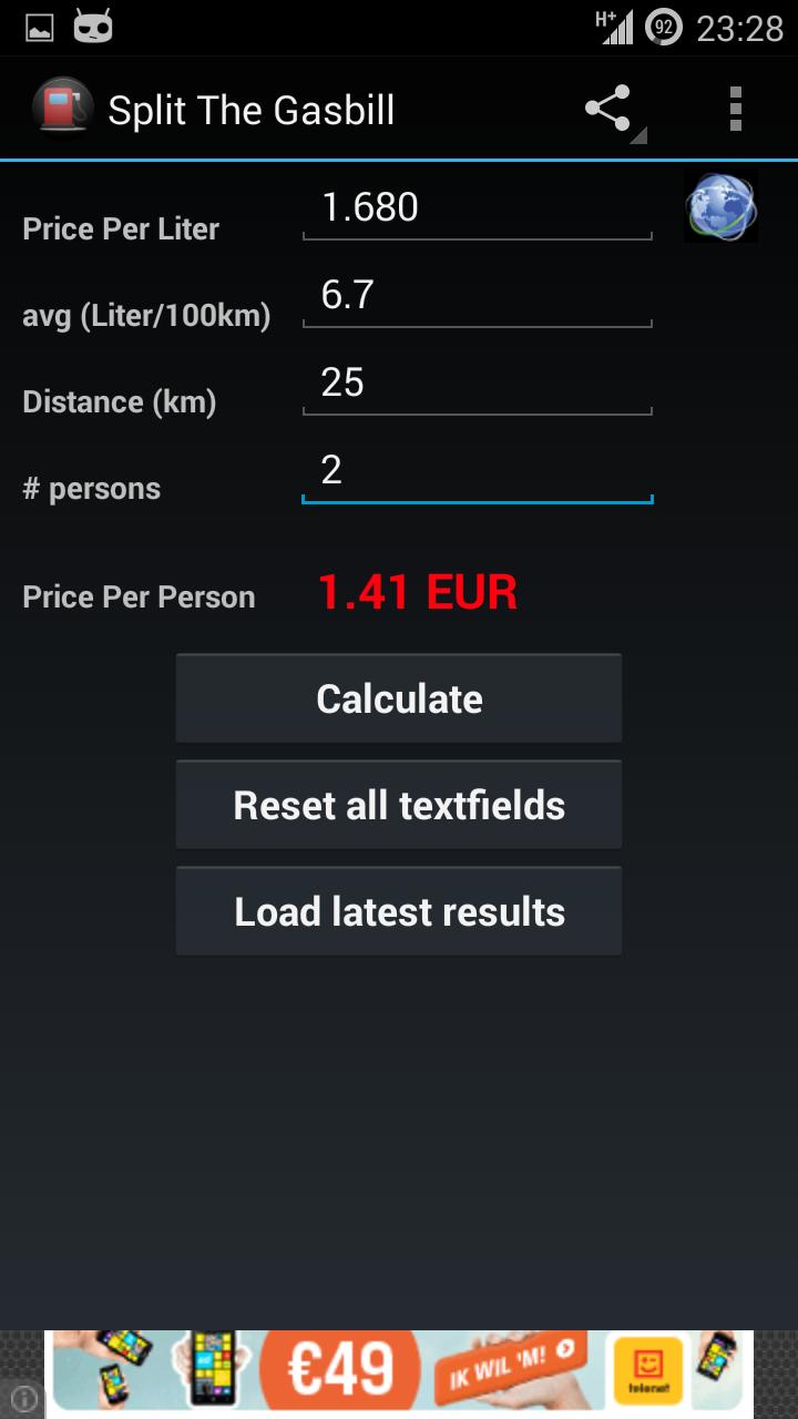警告:该功能的结果始终为每升欧元。即使您在设置中设置了加仑和另一种货币。未来版本将解决此问题。